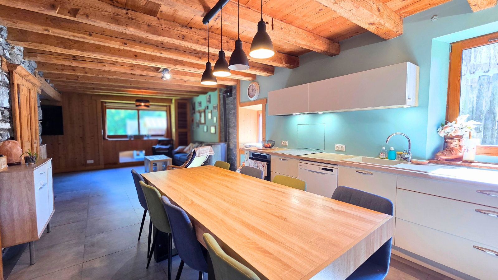 Séjour chaleureux avec cuisine équipée et conviviale