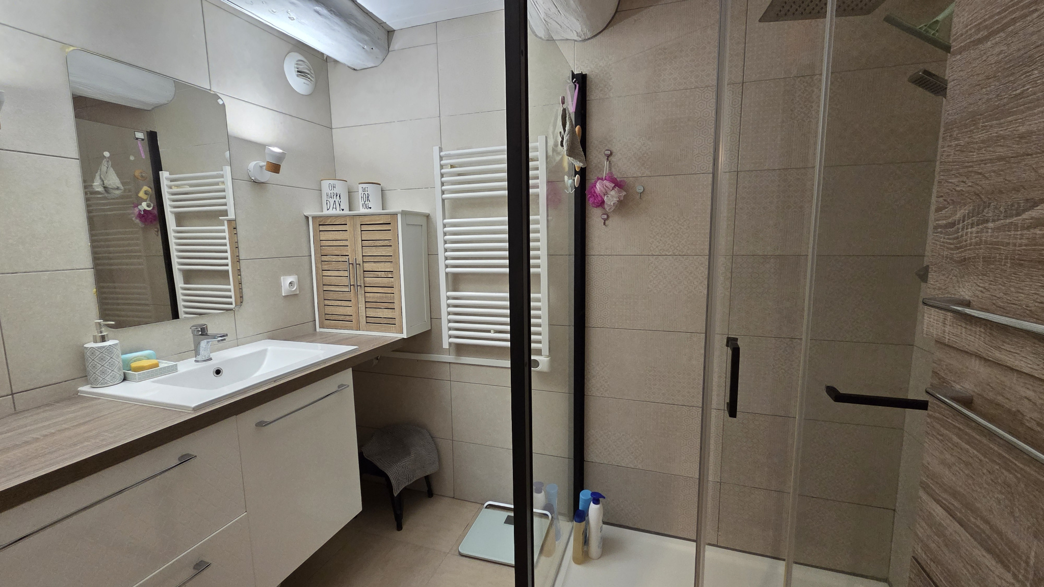 Un véritable compromis maison/appartement : 94 m² habitables, entièrement rénovés, avec terrasse privative et jardin clos d’environ 100 m².
