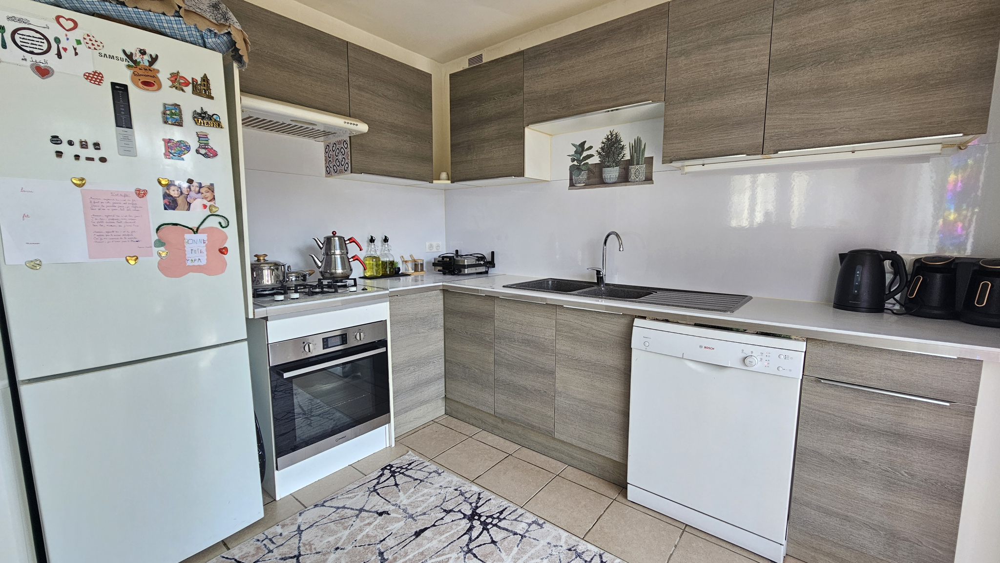 Cuisine équipée ouverte sur un séjour lumineux